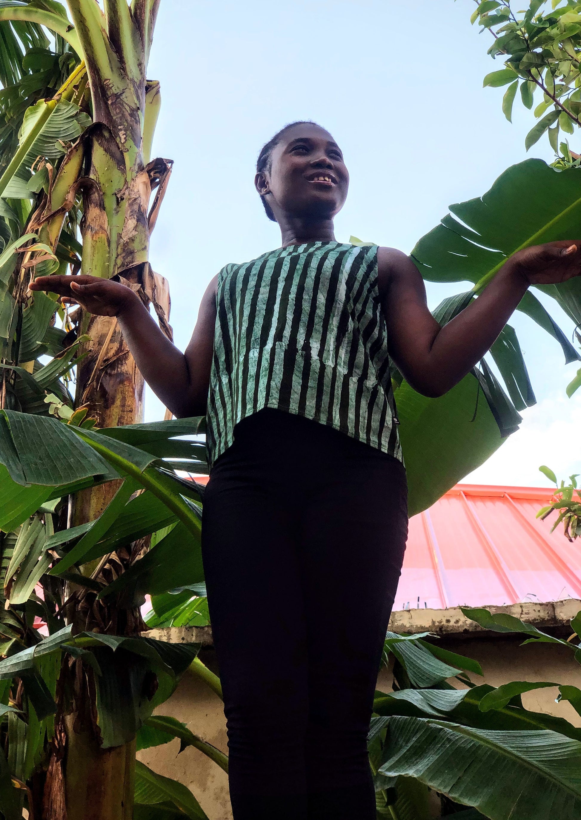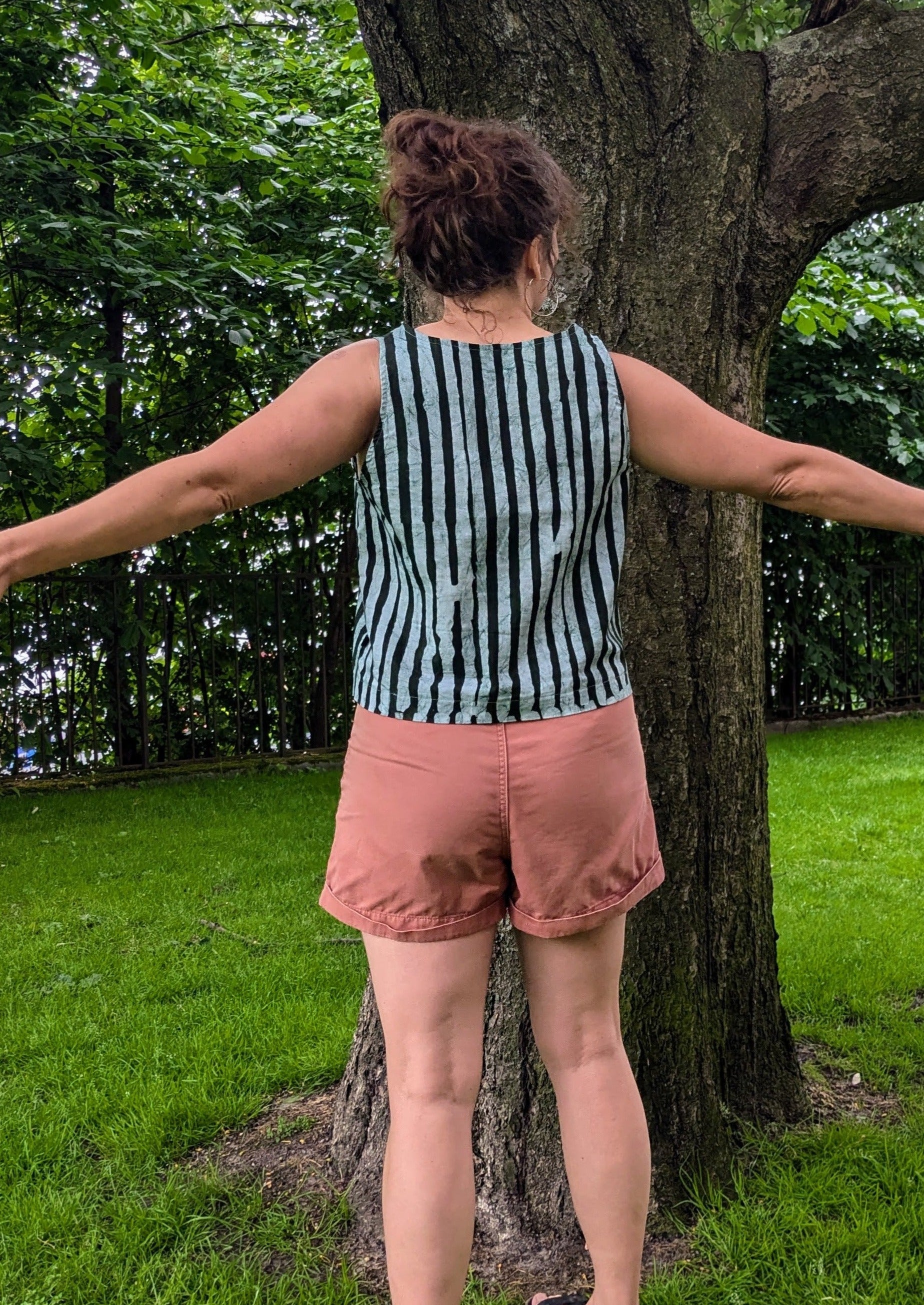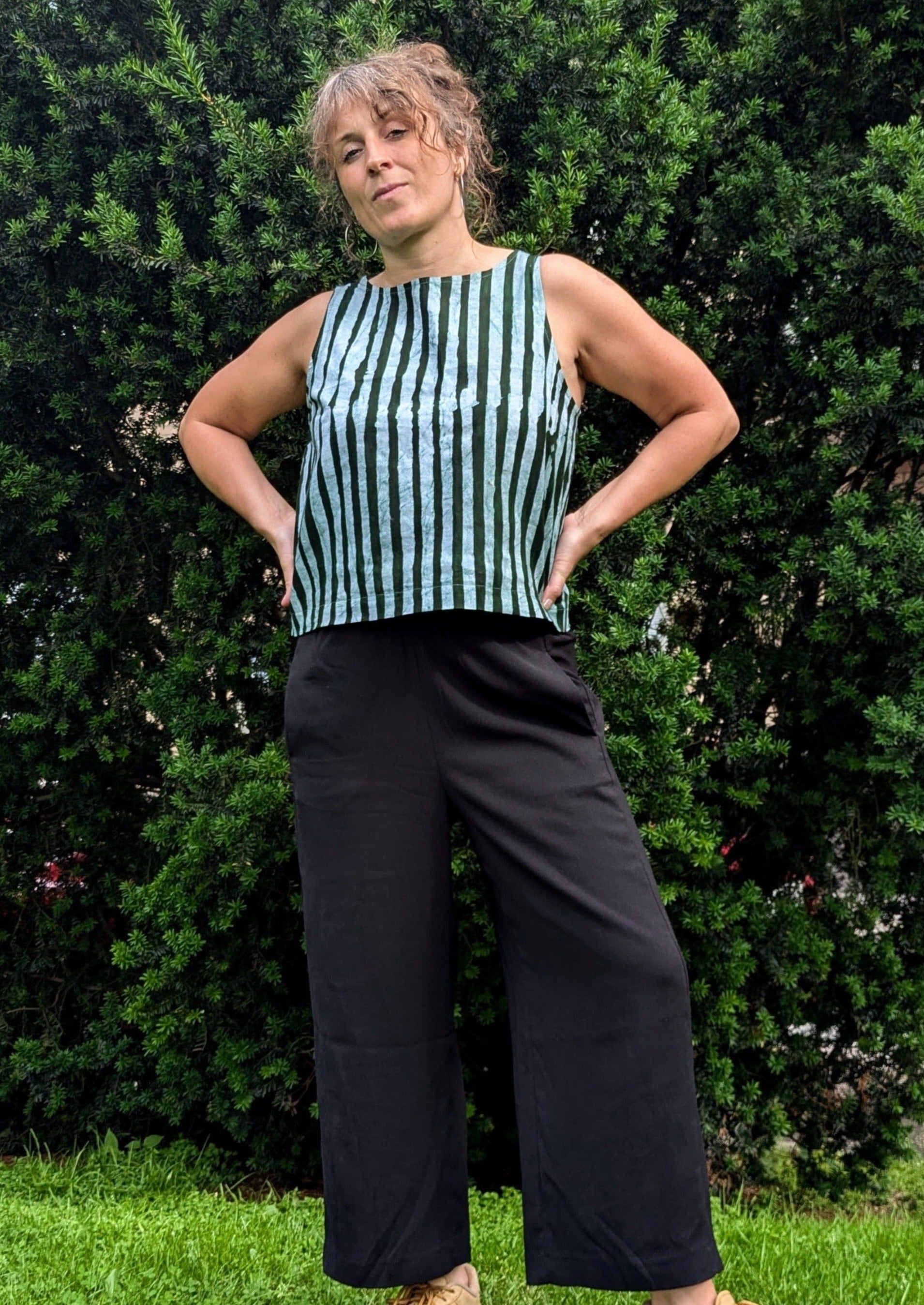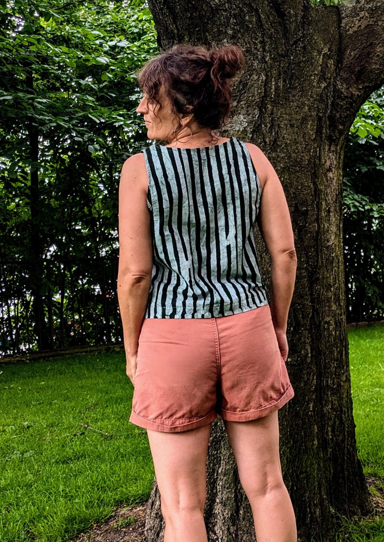 Sleeveless top in Green Makola, handcrafted in Ghana. 100 % cotton.