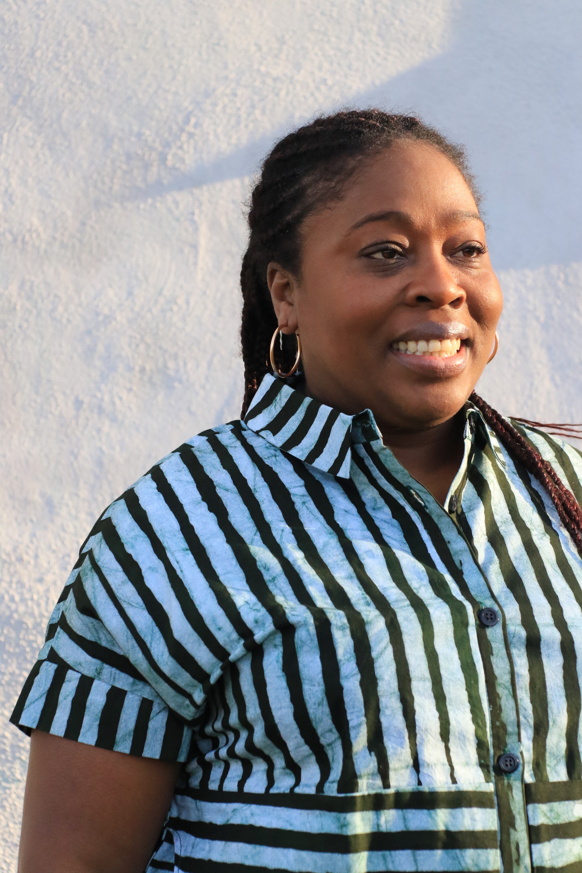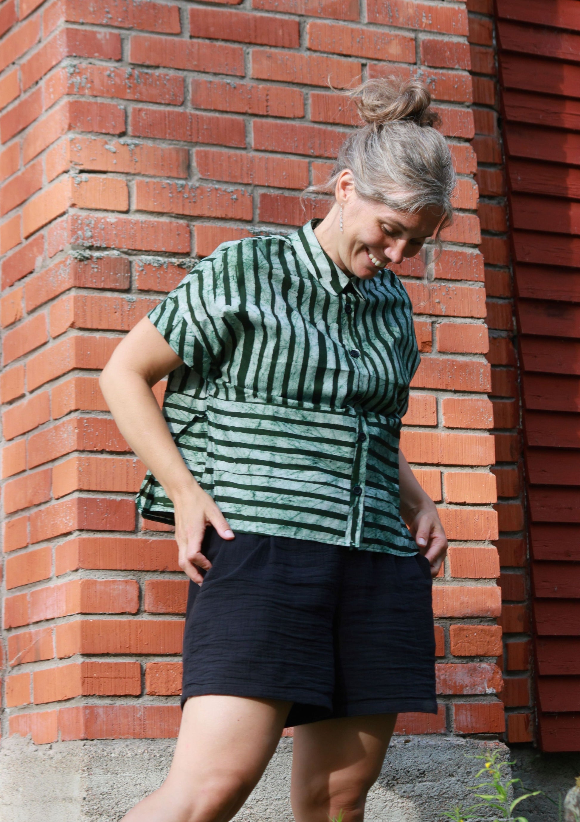 Boxig kortärmad skjorta i tyget Green Makola. Handfärgad och handsydd i Accra, Ghana. 100% bomull.