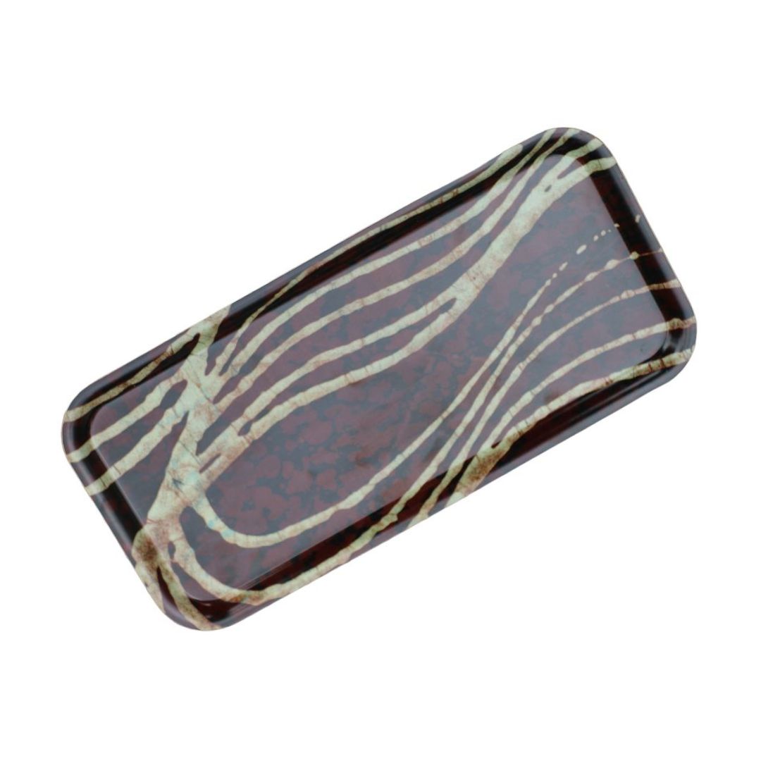 Bricka gjord av handfärgade tygrester från vår klädproduktion i kombination med skandinavisk björkfanér. Handgjorda i Sverige av Formpress.com. Varje bricka är unik, beroende på variationer i mönsterplacering och nyans.